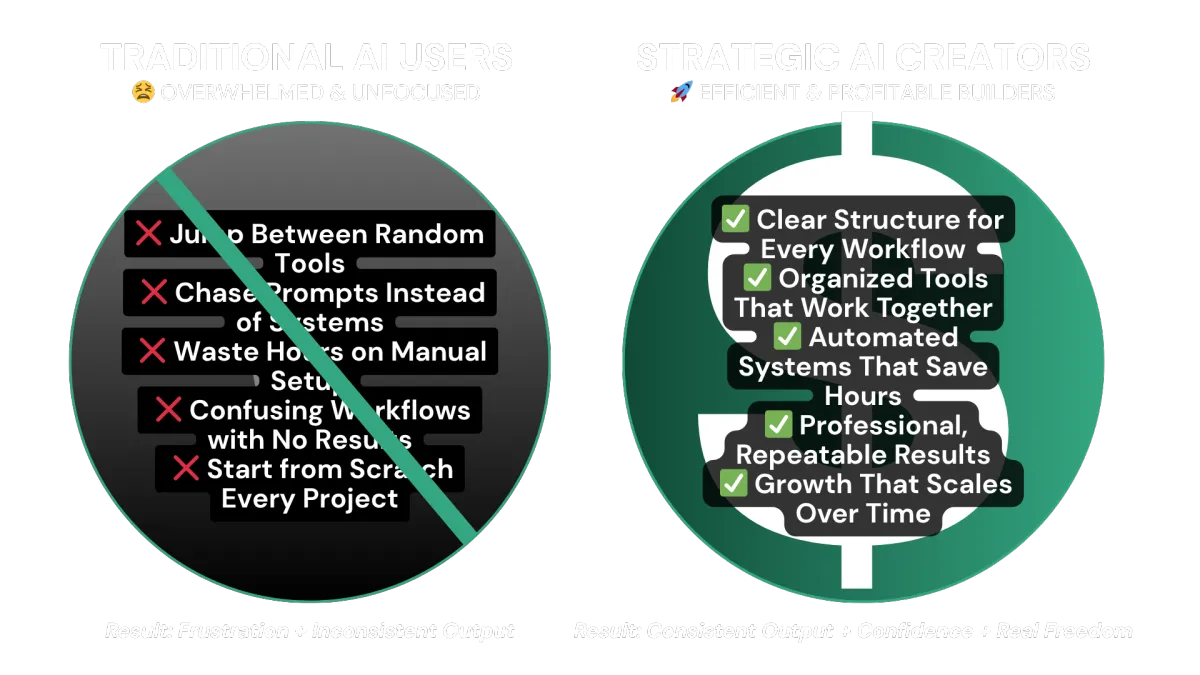 The people who win with AI are not the ones showing off fancy dashboards or big followings. They are the ones who understand how to turn ideas into systems that run consistently and get real results.