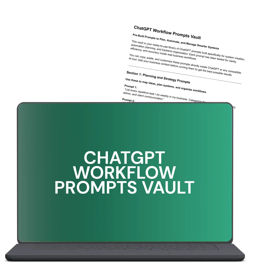 BONUS #2: ChatGPT Workflow Prompts Vault - A library of proven prompts that turn ChatGPT into your personal assistant for planning, organizing, and optimizing workflows.